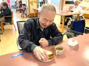 美味しい和菓子を召し上がってもらい、米寿、白寿の皆さんにご挨拶していただきました