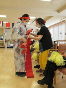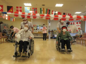 衣装が……無理やりな感じもしますが💧利用者の皆さんが大笑いしてくれれば