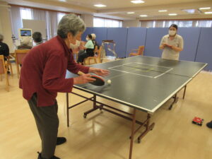「どーれ、卓球してみようかしら。若いころはよくやったのよ」